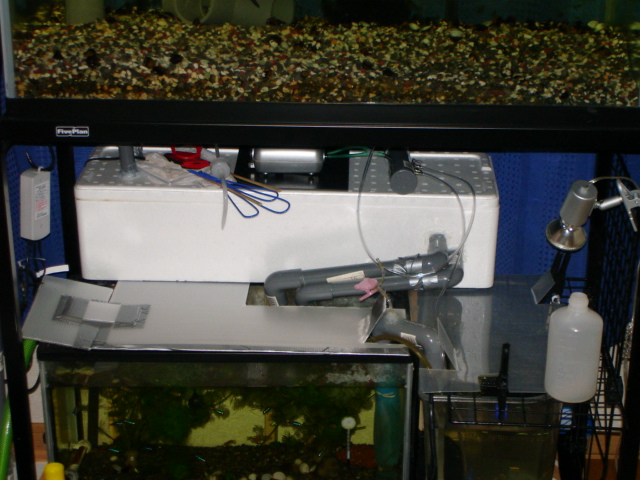 最初は分岐の前に逆流防止弁をつけていたがポンプのパワーロスが激しく全体の圧力が下がってしまった。ポンプよりも上の水槽行きのホースにつけたとたんに復活した。エアストーンよりも抵抗があったことが判明した。もう少し抵抗の少ないものは無いかな?